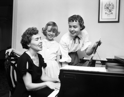 Mrs. Robert Opie Lindsay is pictured with her daughters, Muriel, left, and Anne, right. Mrs. Lindsay was recently elected president of the Whitlock Music Club.
