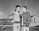 Bob Crump, left, of Amarillo and Boyd Dollar of Amon Carter Riverside become acquainted after posting times of 9.9 in the 100 yard dash Friday. That was day's fastest times and qualified them for finals.