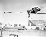 J. W. Hutchinson of Lubbock goes over high jump bar at qualifying 5 foot 9 inch mark in high school preliminaries of Southwest Recreation Track Meet Friday.