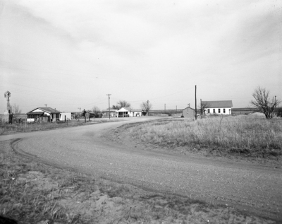 View of the town as it looks now. It once had 2,300 residents. At left is a residence and the J. R. Blevins store which clsoed recently. Center is the Roxie Miles store, right are the post office and a portion of the Baptist Church.