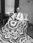S. A. Nolen, 88 of Dallas, takes a final stitch on the 40th patchwork quilt that he's made. He cut out and stitched pieces together in just five days.