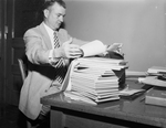 Kenneth Toal is shown as he transcribes testimony given in the hearing here on Southwestern Bell Telephone Company's request for higher Fort Worth rates. Toal and two other court reporters, Frank Nuss, and J. C. Groce filled 22 notebooks with 750,000 words of testimony. Final sessions of the hearing will start at 10 a.m. Tuesday in City Hall when the public will be allowed to ask questions.