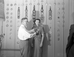 Forms a perhaps unique collection for Charlie B. Team, shown here with Mrs. Team and the antique English medallion he had made into a costume jewlery pin for her.