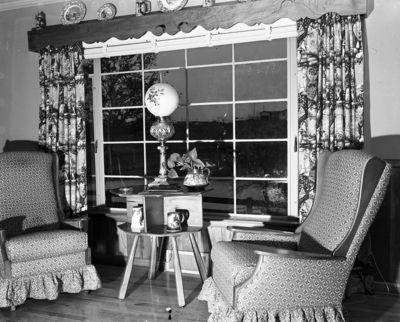 The R. C. Houlihans spent months planning their home which they call "Trail's End." This window in the den overlooks the lake area which is landscaped as a Texas garden spot.