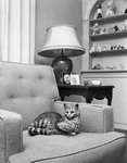No, you can't believe your eyes when you look at this tabby from Puerto Rico. It is not real but a lifelike, lifesize model which is one of the gems of a local collection of sculptured likeness of a favorite household pet. Behind on shelf are other cat figurines, part of Mrs. Ferne Whiteman Smith collection of 170 cats,