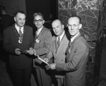 New officers of the Texas Grand Lodge of Odd Fellows chosen here Monday at the 113th annual convention at Hilton Hotel are, left to right, Leonard Miller of Midland, grand master; V. I. Grounds of Longview, deputy grand master; Reverend Earl P. Vaughn of Bay City, grand warden, and R. E. Shepherd of Denton, grand treasurer.