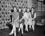 Five finalists in the contest for Sweetheart of Texas Christian University are, left to right, Misses Pat Cowden, Wichita Falls; Peggy Dyche, Fort Stockton; Leona Gillette, Fort Stockton; Loretta Reynolds, 1326 South Lake, Fort Worth, and Nancy Stevens, Gladewater. The sweetheart will be elected April 13, and will be presented with the runners-up at the annual TCU spring formal of April 17.