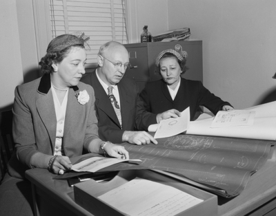 Mrs. Artice Lilly, president elect of the Junior League of Fort Worth, William G. Hassler, board members of the Children's Museum; and Mrs. D. L. Johnson, Junior League program chairman, discuss plans for the astronomy deck on the Children's Museum for which the league has provided $1,500.