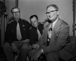 A. F Temple, head of the Texas Department of Public Safety driver's license division, right, defended City Corporation Court W. H. Gilmartin's policy for handling cases involving motorists whose licenses expire before they get a new one. With him were Captain J. C. Ownby, supervisor of the driver's license division in Northeast Texas, center, and Lieutenant J. B. Hart, assistant to Captain Ownby.