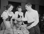 Misses Jo Ann and Joyce Hubernak and Jerry Merlick, who participated in the Harmony Club's International folk festival program recently, are shown, in Czech costume, with several of the elaborately decorated Czech Easter eggs displayed at the festival.