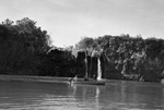 Above the little city of Tow, springs form creek whose waters later drop many feet into Lake Buchanan. This picture, taken April, shows the effect of a long drouth on the volume of water. In normal times, the fall is about 30 feet wide.
