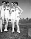 This trio will help Arlington Heights try to win the city high school track title at Farrington Field Friday night. left to right, Sidon Harris, halfmiler, Milers Bob Whitten, and George Moore.