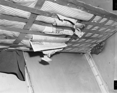 Old newspapers are used to cover holes in a bunk mattress at county jail to prevent the mattress stuffing from falling out. Other equipment in need of repair at the jail has been under scrutiny since Sunday's jailbreak attempt.