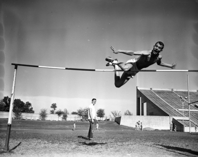 Arlington Heights' Bob Roark, who's lost only once this spring, wins high jump in triangular track meet at Farrington Field Wednesday.