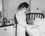 Peter Herbert Frederick Tringham of 1700 Lawther Drive, a wartime British army captain who survived the Battle of Dunkerque and served in the jungles of Burma and India without a scratch, is shown in the polio ward at City-County Hospital with his wife.