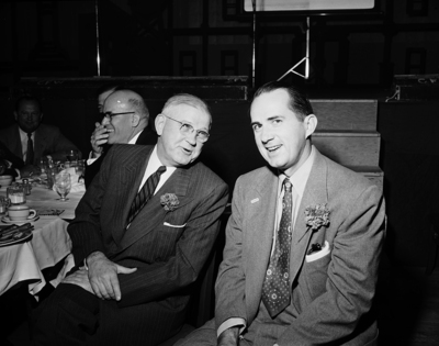 Governor Shivers, right, chuckles as a gag about him hits home during the Gridiron Show. GOP Committeeman Jack Porter of Houston thinks it's funny, too.
