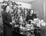 Tea or Coffee?: Mrs. W. E. Boswell, center, prepares to serve refreshments to Mrs. H. E. Cunningham, left, and Mrs. L. S. Sooter, right. The Woman's Club's poetry department will sponsor the roundup of Texas authors April 14-15.