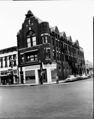 Extension shot of the Knights of Pythias Lodge Hall. Close up shot
