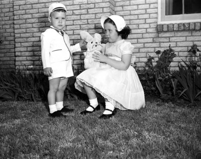 The joys of Easter are varied, what with Easter eggs, bunnies, new frocks, and special church services. Pictured today are Eater pleasures around town. The Musical Bunny: Marilyn Bodiford winds up Hippity-Hop, a musical rabbit, for her brother, Lowell T. Bodiford II.
