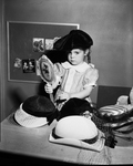 It's difficult for a woman to decide just what hat to wear Easter Sunday. And three-year-old Cindy Wendland, daughter of Mr. and Mrs. Kenneth v. Wendland of 4513 Houghton, is no exception.
