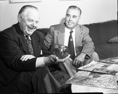 Veteran Hollywood Actor Gene Lockhart, left, was a visitor Monday at the home of Paul A. Jones Jr., 3809 Heywood. He plans to leave for California on Tuesday.
