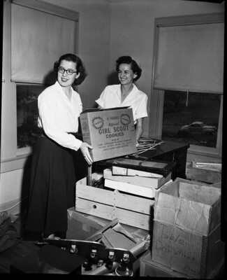 The new Girl Scout headquarters at 1109 W. Lancaster opened its doors for business Tuesday after a strenuous Monday moving day. Callers will find the organization's director, Miss Marian Hardy, right, and Miss Betty Rowland, field director, putting things in order. The new headquarters will give the organization more space.