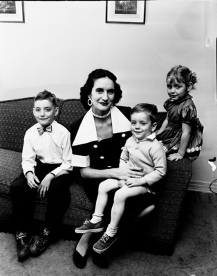 Mrs. Warren Van Brunt, 3144 Tex Boulevard, is pictured with her children, Vincent, left, Warren and Vicki, Mrs. Van Brunt recently was elected as president of Chi Omega Sorority.