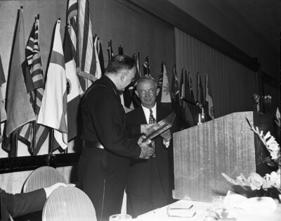 Police Chief R. R. Howerton, right, accepts Fort Worth Safety Council award from Mayor J. R. Edwards for "a job well done".