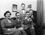 Mr. and Mrs. William C. Rowland of Pittsburgh and their three sons, William Jr., 11, standing; Jimmy, 9, and Bob, 6, seated, are visiting Mr. Rowland's mother, Mrs. James Rowland, 2708 S. Adams, and sisters, Mrs. Clifford W. Williams, 6440 Darwood, and Mrs. C. B. Marshall, 4517 Martha Lane.