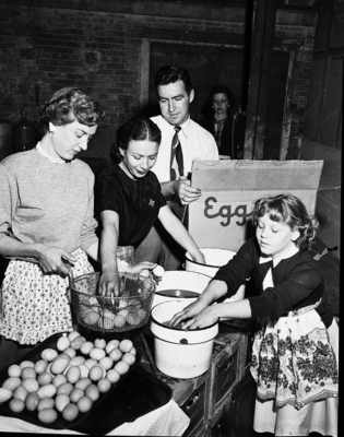 Wives of Jaycees add their touch to the annual Easter egg hunt by dyeing 1,800 eggs to be used Saturday during the Jaycee Easter Celebration.