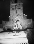 The angel of the Lord tells Mary Megadalene, Margaret Grider, and Mary of Bethany, Donna Van Dyke, that Jesus has risen from the tomb and darkness has changed to light. The angel was played by Mrs. Elaine Swallow.