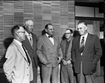 Officials of the Lower East Fork Watershed Association discuss benefits of detention structures to be built on tributaries of the Trinity River with Louis P. Merrill, right, regional director of the Soil Conservation Service. Others, left to right are D. L. Boyd of Kemp, association president and supervisor of the Kaufman-Van Zandt Soil Conversation District; Odis Kent of Crandall, a director of the association; Emmett Jordan of Kaufman, secretary, and Lynn chowning of Crandall.
