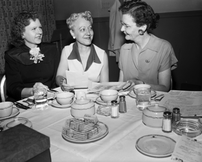 In Planning Session - Local committee members made arrangements Tuesday night for the entertainment of delegates to the third national convention of the American Association of Business Women here October 24-25. In charge of the program, left to right, Mrs. Gwen Palmer, Miss Helen Hubert and Miss Mary Nell McCall.