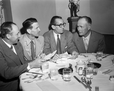 Tournament Planners - Fort Worth Gun Club officials John Loffland Jr., A. H. Lightfoot, Dan Boone and J. D. Verner, left to right, check plans for Texas State Trapshoot scheduled here May 14-17.
