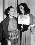 Two of the principals in the Fort Worth Civic Opera cast for "Cavalleria Rusticana" were caught during the final rehearsal of the opera Tuesday night at Will Rogers Memorial Auditorium, where the first of two performances will be given Wednesday night, April 8. Left to right are Mamma Lucia (Martha Pulliam) and Lola (Karen Larsen).