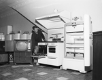 Walton Clampitt, co-owner of the Clampitt & Bransom Home Appliance Store, at 311 South Jennings. Walton can be seen in the image, preparing his merchandise for the formal opening of the business. Published in the morning edition, April 20, 1950.