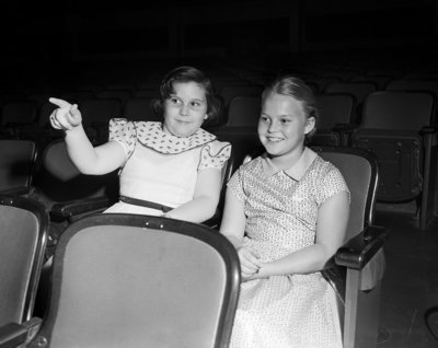 Duo Opera First Nighters - Wednesday night's double-header presentation of "Cavalleria Rusticana" and "Gianni Schicchi" by the Fort Worth Opera Association brought Fort Worth music lovers to Will Rogers Memorial Auditorium for the opening performance. Final presentation of the duo will be at 8:15 p.m. Friday. Bonnie Jarrell and Ginger Smith, both 10, tasted some of their first opera Wednesday night. They are the daughters of Mr. and Mrs. I. W. Jarrell Jr., and Mr. and Mrs. J. Hulbert Smith.