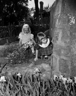 Enjoy Flowers - Two little girls, Angela Ambrose, left, and Sharon Smith, enjoy the iris and other flowers in the garden of Mrs. W. D. Smith, 3300 Avondale, grandmother of Sharon. Angela is the daughter of Mr. and Mrs. Joe Ambrose; and Sharon is the daughter of Mr. and Mrs. J. Hulbert Smith, 3600 Westcliff N.