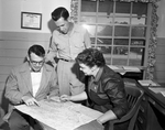Youth Serves Youth - Leaders in the Chi Delta Mu movement at Texas Christian University make plans for work with Christian Youth Fellowship groups over the state. They are Tommie Bouchard, left, state youth director; Newell Faulkner, center, president, and Miss Ruth Towne, sponsor.