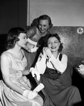Opening Performance - First night presentation of the two operas, "Cavalleria Rusticana" and "Gianni Schicchi" at Will Rogers Memorial Auditorium was exciting to the audience as well as the performers. Mrs. E. G. Niblo and her sister, Mrs. Jack Ryfle, left to right, watch as their cousin, Miss Irene Jordon, who sang Santuzza in "Cavalleria Rusticana", dons earrings for her role.