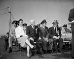 With Folks 'Back Home' - Colonel Royal N. Baker, a modest hero and America's top jet ace, waits to greet McKinney friends at the celebration they held for him. From left to right, Mrs. Baker, Congressman Rayburn, Baker and McKinney Mayor Fitzhugh Newsome. Baker was honored for his outstanding record which he made in Korea as a jet pilot in the Air Force.