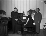 Mr. and Mrs. J. M. Wilson of Floydada presented First Methodist Church in Bridgeport with an electric organ in memory of Wilson's father, D. M. Willson. At left is Reverend Travis L. Darby, Bridgeport pastor, Mrs. Darby and at right, V. E. Baldridge, chairman of board of the church.