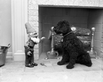 French and German - Abel von Brentano, a French poodle registered with the Munich, Germany, poodle club, is called Andy by his master, Dr. William O. Hulsey. Andy flew to Fort Worth from Germany by commercial airlines. Here he regards a hand-carved dwarf which is another native of Germany.
