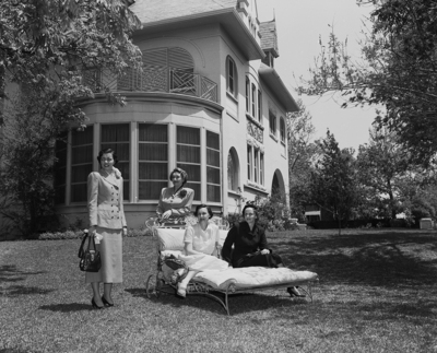 Mmes. Eric Hyden Jr., left standing, Gladys Westbrook, standing, Emory Cantey, left seated, and Hubert Laney, in the garden at the Westbrook home where garden club members and guests.