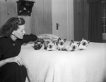 Mrs. Frank A. Unger shown with her siamese cat and four kittens
