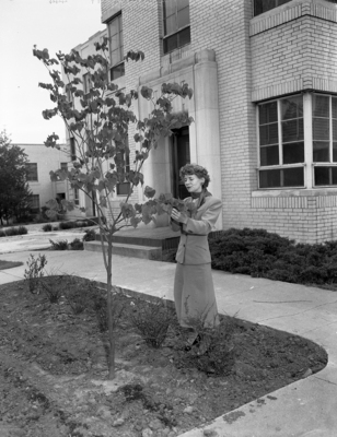 Mrs. Sam Brendle, shown with tree planting at the City County Hospital by the Bluebonnet Garden Club