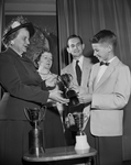 Third Safety Cup - Len Hall, right, a sixth grader and chairman of the North Hi Mount Elementary School Safety Council, accepts from Mrs. C. L. Mansfield, left, Fort Worth Safety Council vice president, a third loving cup that his school has won for its safety program. Also shown are Mrs. Janie Turner and Leon McCleary, cosponsoring teachers of the school's council.