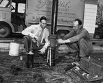 Image shows William H. Christiansen, left, president of the Fort Worth Master Plumbers Association, and D. C. Dillon finishing up the plumbing.