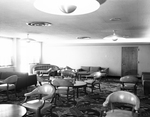 The opening of the Greater Fort Worth International Airport. Interior shot of a room with many chairs and couches. The carpet has an intricate floral pattern. The airport is also known as the Greater Southwest International Airport and Amon Carter Field.