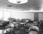 The opening of the Greater Fort Worth International Airport. Interior shot of a room with many chairs and couches. The carpet has an intricate floral pattern. The airport is also known as the Greater Southwest International Airport and Amon Carter Field.